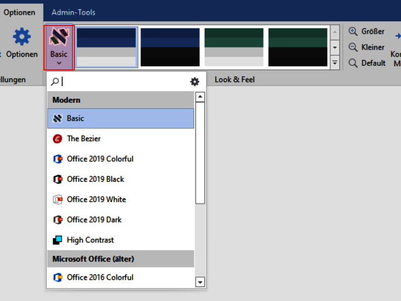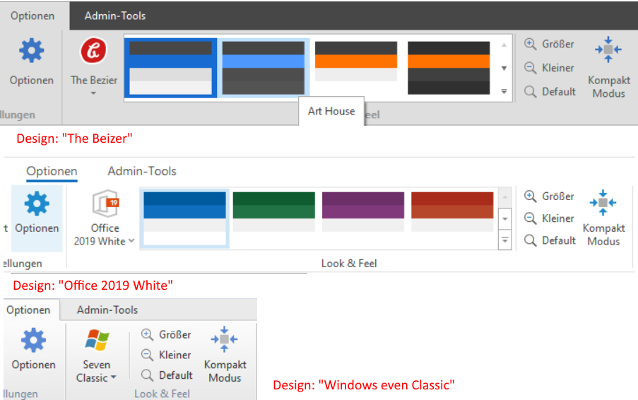 Es gibt 3 Designgruppen: Modern, Microsoft Office (älter) und Klassiker.