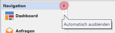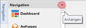Um es anzuheften (permanent einblenden), klicken Sie im Navigationsbereich oben rechts auf die Pinnadel.