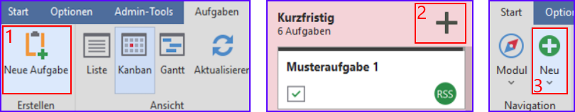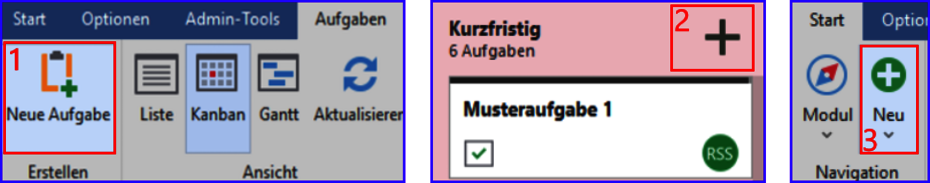 Über folgende Wege können Sie eine Aufgabe erstellen: