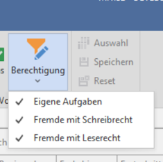 Klicken Sie auf Aufgaben > Berechtigung und legen Sie fest, welche Aufgaben angezeigt werden sollen: